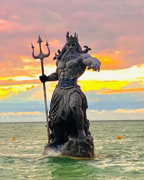 Progreso, Yucatán – Una estatua de Poseidón, recientemente instalada en la playa del puerto de...